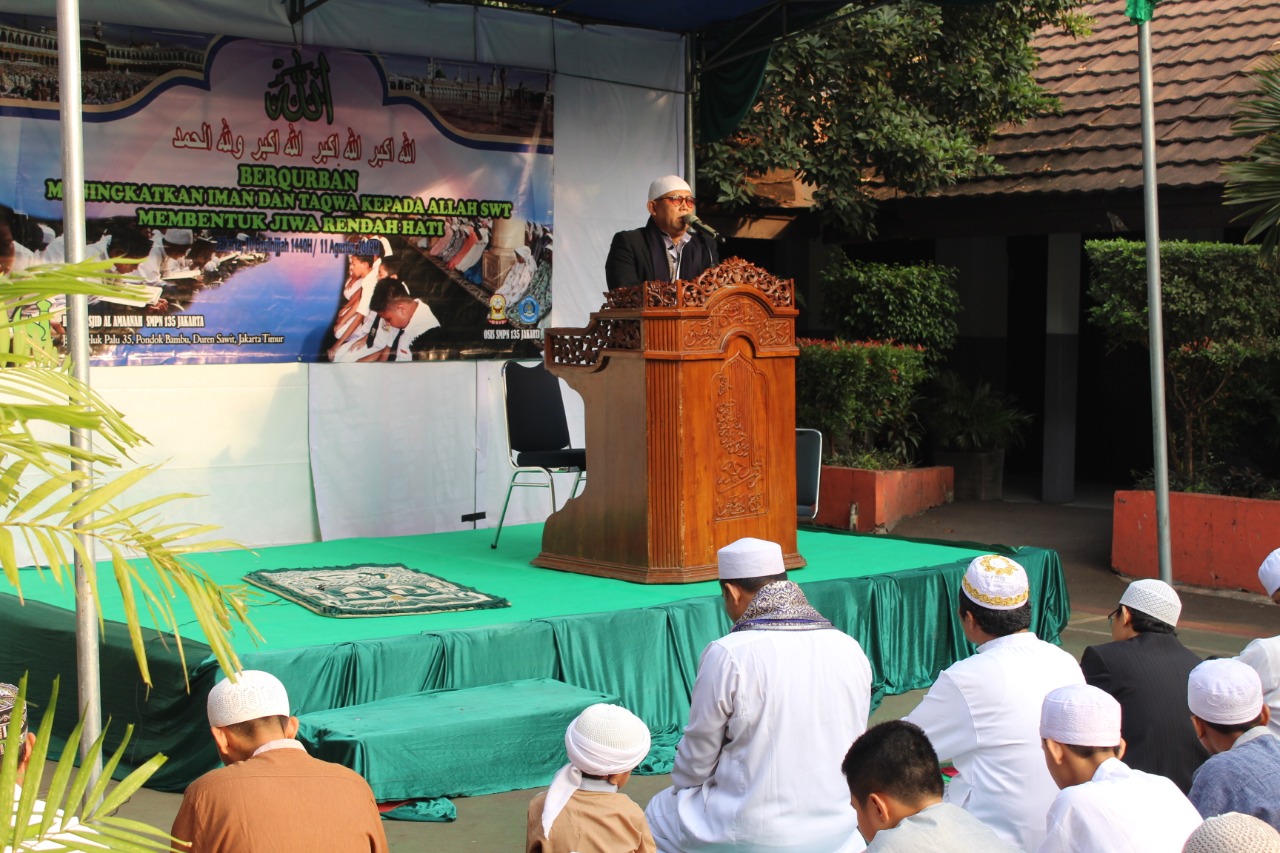 Melakukan sholat Idul Adha berjamaah dengan Masyarakat sekitar SMP Negeri 135 Jakarta, dan melakukan...
