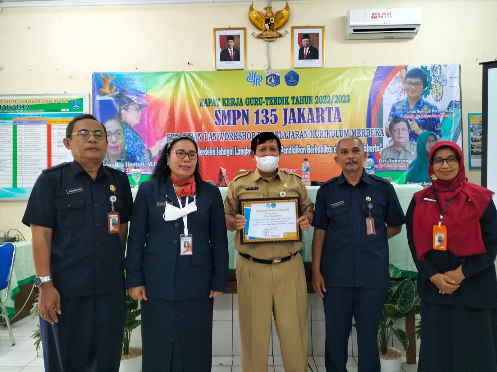 Kedatangan Pengawas SMPN 135 Jakarta Bapak Drs. Suparno dalam Rapat Kerja Guru-Tendik Tahun 2022/2023 SMPN 135 Jakarta mengenai Pembelajaran Kurikulum...