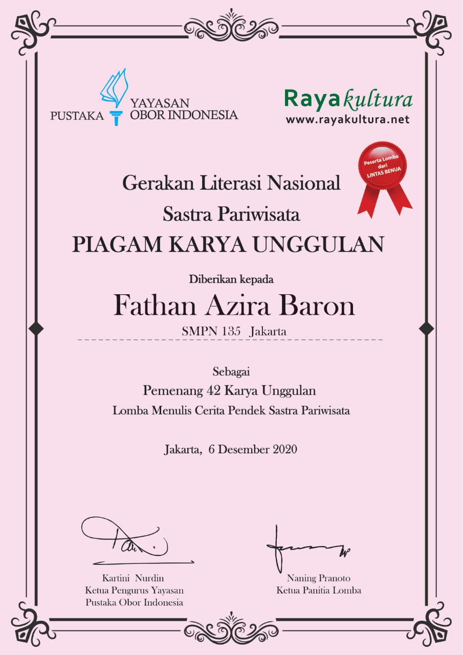 17 Desember 2020KARYA UNGGULAN LOMBA CERPEN PARIWISATA - Fathan Azira Baron 7B SMPN 135 JAKARTA